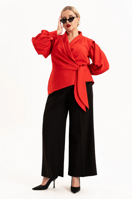 Практичные и функциональные брюки гармонично сочетают комфорт и современный стиль. Незаменимый элемент гардероба для тех, кто ценит удобство в сочетании с актуальным дизайном. Брюки с широкими штанинами палаццо выгодно подчеркивают женственные формы, а свободный крой обеспечивает удобство в любой ситуации. На брюках обработаны карманы в боковых швах, по талии пояс с застежкой на молнию и частично на резинке. Благодаря использованию высококачественных материалов, они обладают отличной плотностью фактуры, обеспечивая удобство и долговечность. Высокая посадка добавляет элегантности и стройности фигуре, а прямая модель идеально подходит для женщин с любым типом фигуры, а также высокого и низкого роста. Благодаря наличию резинки на талии обеспечивают идеальный силуэт и удобство при носке. Классическая модель для полных леди и девушек плюс сайз. Отличное решение для всех кто ищет стильные базовые брюки большого размера.