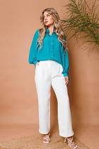 27.03 Vilatte Брюки-палаццо из хлопка с защипами D24.268 темно-оливковый