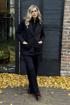 Нарядные длинные брюки смотрятся изысканно благодаря особому мягкому бархату с деликатным переливом — это не только модно, но еще и практично. Плотная структура ткани защищает от ветра и дарит ощущение уюта в прохладное время года. Их глубоки черный цвет добавляет образу выразительности и легко сочетается с разными элементами осеннего гардероба.