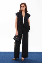 Брюки: Высота посадки - 29см, Длина брюк без пояса - 108.5см, Длина по внутреннему шву - 83.5см, Ширина брючин сверху - 79см, Обхват брюк по низу - 70.5см, Ширина по бедрам - 60см, Ширина по талии - 48см;