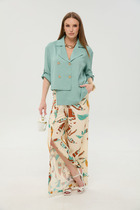 Атласные широкие брюки на резинке (приобрести блузу с фото можно по арт. 6704).