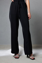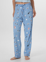 Брюки - молодежные из трикотажного полотна «кулирка» с набивным рисунком «полоска», длинные, свободные, на притачном поясе с эластичной тесьмой внутри, выполненным из двух видов ткани: с набивным рисунком и гладкокрашеной. В пояс вставлен декоративный шнурок, продетый через две обметанные петли в центре пояса.