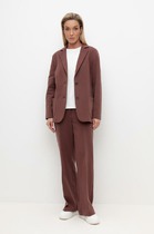 Модель свободного кроя, на притачном поясе. Пояс частично собран на резину. Спереди по талии защипы.