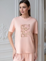 Vilatte Футболка с принтом свободная из премиального 100% хлопка D49.158 пудра_л