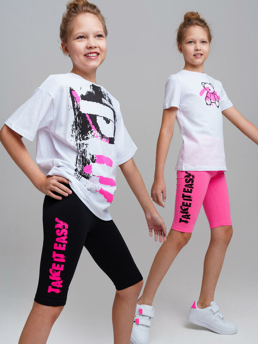 Набор леггинс для девочки подростка. Леггинсы укороченные из качественного и приятного на ощупь трикотажа джерси. Высокое содержание хлопка. Благодаря наличию эластана в составе ткани изделие держит форму и меньше мнется. По поясу резинка. Модель выполнена из качественного и приятного на ощупь трикотажа.