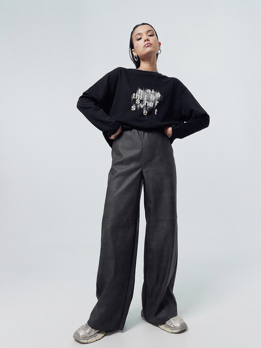 Брюки женские свободного силуэта из трикотажного полотна "под кожу".