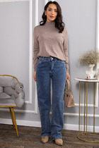 Vilatte Брюки mom fit из эластичного хлопка с покрытием под кожу D24.274 кофейны