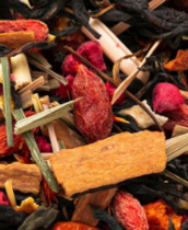 Черный пакетированый байховый чай, купаж цейлонского и кенийского сортов. С добавками натуральных кусочков яблока и лимона, листьев шиповника, натуральных ароматизаторов малины и клубники. 25 пакетиков.