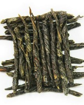 В сухом виде чай представляет из себя тонко скрученные жгутики черного цвета с серебристыми типсами.