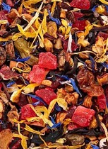 Чудесный напиток с богатой палитрой вкуса и ярким ароматом клубники, в составе которого гибискус, кусочки яблока, клубники, шиповник. Как заваривать: Фруктовый чай рекомендуют заваривать 5-7 минут в немного остывшем кипятке (80-85?С), из расчёта 1-2 чайных ложки на 150 мл воды.