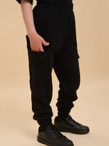 Базовые брюки из хлопкого футера для мальчика. Эластичный пояс, регулировка шнуром в поясе. Удобный низ за счет эластичных манжет.