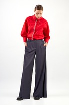 Брюки широкие из трикотажного полотна с блеском. По талии притачной пояс с внутренней резинкой и шлевками.