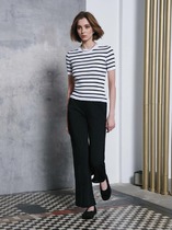 Брюки прямого кроя из эластичного футера. Притачной пояс с резинкой, боковые карманы с отрезным бочком.