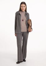 Брюки-лосины из трикотажного полотна с начёсом. По талии отрезной пояс. По спинке кокетка и накладные карманы. Спереди нефункциональные карманы и гульфик. По переду вдоль лосин защип-имитация лампаса. По деталям двойная отстрочка.