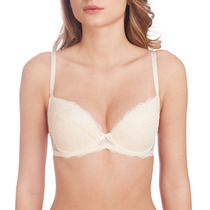 Бюстгальтер классической формы с формованной чашкой с небольшим Push-up по низу. Детали изделия выполнены из эластичного полотна и эластичного кружева. Бретели эластичные, съемные. Центральная деталь декорирована бантиком из атласной ленты.