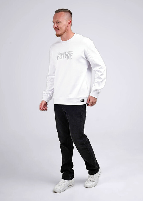 Стильный мужской джемпер из трикотажного полотна. Изделие с круглым вырезом горловины и длинным двухшовным рукавом на манжете из кашкорсе. Модель дополняется дизайнерским принтом и фурнитурой.Отличный вариант на каждый день и встреч с друзьями.