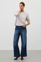 Фуфайка прямого силуэта из трикотажного полотна из полиэстера и эластана. Втачной длинный рукав. Округлая горловина с обтачкой. По переду и спинке декоративные защипы.