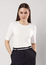 Футболка из трикотажного полотна кашкорсе, прямого кроя. Короткий втачной рукав. Округлая горловина с обтачкой.