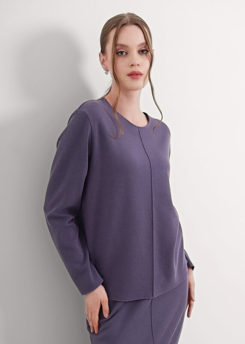 Джемпер прмого силуэта из трикотажного полотна силаник. Округлая горловина. Длинный втачной рукав. По переду вертикальный защип. По низу рукава и изделия мелкий оверлок.