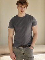 Базовая однотонная футболка стандартного объема с круглой горловиной, втачным рукавом из хлопкового полотна с добавлением эластана. Является неотъемлемой частью мужского гардероба.
