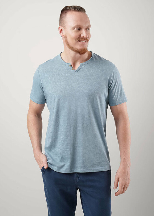 Футболка мужская с округлой горловиной и планкой из фактурного полотна ""флам"". Данная модель прекрасно комбинируется с джинсами или шортами. Отличное решение на лето для прогулок с друзьями или поездки на отдых.