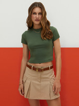 Укороченная футболка с втачным рукавом из кулирной глади. Модель универсального базового цвета с буквенным принтом.