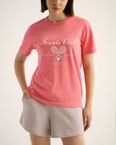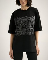 Футболка прямого силуэта с втачным рукавом из 100% хлопка, низ рукавов с отворотами, по низу ркава и на переде изделия принт