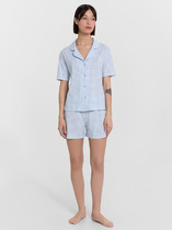Халат на запах из трикотажного полотна. По горловине и борту обтачка с застилом, по талии пояс со шлевками и внутренними завязками. Спущенная линия плеча с коротким рукавом длиной 3/4, по низу рукава застил. Спереди принт.