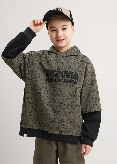 Clever Худи детское CLE 867320/12ан_п т.хаки/чёрный