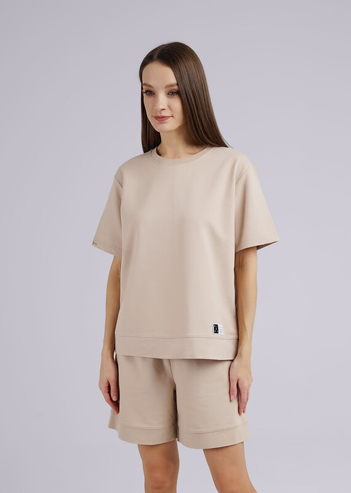 Набор, состоящий из джемпера и шорт. Джемпер прямого силуэта свободного прилегания, горловина обработана обтачкой. Шорты объемные, с притачным поясом на резинке со шнуром. На шортах выполнены боковые карманы с отрезным бочком.
