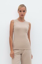 Майка классической длины на широких бретелях, декорирована кружевом по переду.