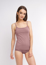 Майка-топ женская из эластичного хлопкового полотна. Двойной перед. Узкая бретель. По низу широкая резинка.