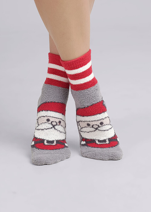мягкие уютные носки из ""травки"" с рисунком Дед Мороз