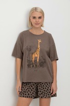 Пижама для дома из хлопкового трикотажного полотна с карбоном. Джемпер с длинным втачным рукавом. Застёжка на пуговицы, воротник с лацканами. По переду накладной карман, нашивка. Боковые разрезы. Брюки прямые, цельнокроенный пояс на внутренней резинке.