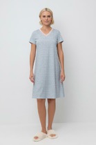 Пижама для дома из хлопкового трикотажного полотна. Футболка прямого силуэта, втачной короткий рукав. Округлая горловина с обтачкой. Спереди принт. Шорты свободные на поясе из жаккардовой резинки.