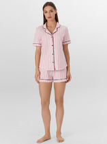 Пижама для дома и отдыха из хлопкового трикотажного полотна с добавлением модала. Майка с V-образным вырезом горловины. Узкая бретель с регулировкой длины. Горловина с внутренней обтачкой. Шорты с поясом на внутренней резинке.