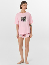 Пижама для дома и отдыха из трикотажного вискозного полотна кашкорсе. Майка на узких бретелях. По горловине и пройме окантовка, спереди бант. Шорты прямые, по талии пояс на внутренней резинке. По низу майки и шорт мелкий оверлок.
