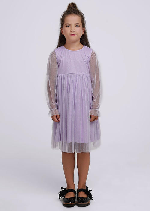 Воздушное как облако! Нарядное платье для девочки - готовый образ на любой праздник! Длинный рукава со сборкой по низу выполнен из мягкой мерцающей сетки. Нижний слой платья - из хлопка 100%, верхний слой - из сетки, как на рукавах. Завышенная талия.