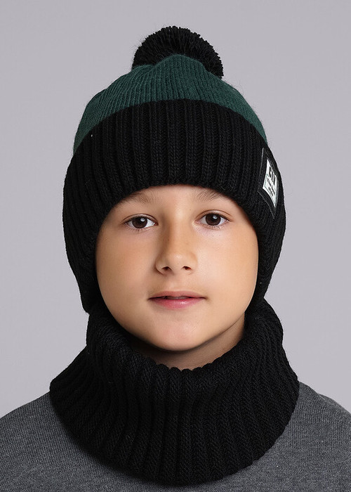 Clever Шапка детская CLE 433849ак флис т.серый/зелёный