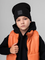 Двойная детская шапка с отворотом, декорирована нашивкой логотип и меховым помпоном. Идеально подойдёт для холодной зимы.