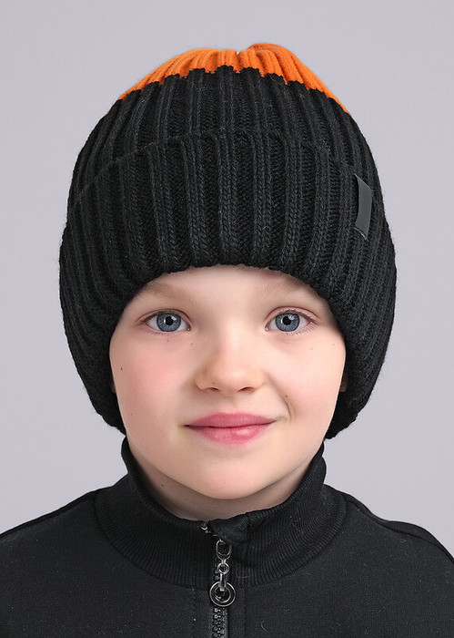 Clever Шапка детская CLE 444143ап флис чёрный/оранжевый