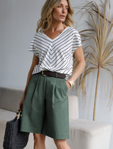 Vilatte Шорты-бермуды с защипами D28.058 темно-оливковый