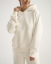 Куртка спортивная из трикотажного полотна футер,на молнии. По горловине капюшон на подкладе со шнуром. Длинный рукав со спущенной линией плеча, нашивка.По низу рукава и изделия манжеты. Спереди карман кенгуру, принт.По пройме и шву рукава открытый срез.