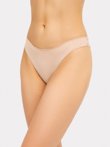 Трусы бразилиана с завышенной посадкой, сзади и сбоку бесшовная гладкая обработка, спереди декоративные горизонтальные вставки из плотной сетки, перед дублирован сеткой, по талии обработка с зигзагом и узкой резинкой