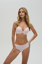 Трусы бразилиана с завышенной посадкой, сзади и сбоку бесшовная гладкая обработка, спереди декоративные горизонтальные вставки из плотной сетки, перед дублирован сеткой, по талии обработка с зигзагом и узкой резинкой