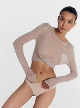 Трусы бразилиано из эластичного вискозного полотна. Спинка из кружевного полотна. Обработка краев по переду - открытый срез, по талии спинки - резинка.