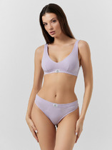 Классическая модель удобной посадки. Изделие комбинированное: перед - кружевное полотно, спинка - трикотаж. По ножкам - резинка с фестоном, по талии - отделкакружевом. На детали переда по центру - небольшой атласный бант.