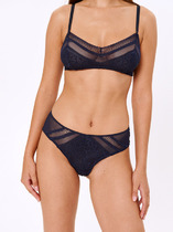 Трусы шорты женские из ажурной сетки. Перед и ластовица дублируются по изнанке эластичным хлопковом полотном. Обработка краев по талии - ажурная резинка, по ноге переда - подгибка, по ноге спинки - узкое кружево. По переду атласный бант.