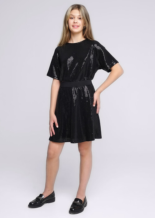 Нарядная блестящая юбка полусолнце для девочки. Пояс из эластичной тесьмы. Органично дополнит любой образ для вечеринки. Сочетайте модель с футболкой или блестящей блузкой в цвет из нашей коллекции.