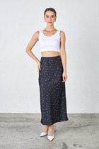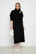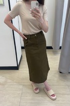 Юбка миди слегка расклешенного силуэта из поливискозного трикотажного полотна джерси. По талии пояс на резинке. По переду и спинке расстроченный средний шов.